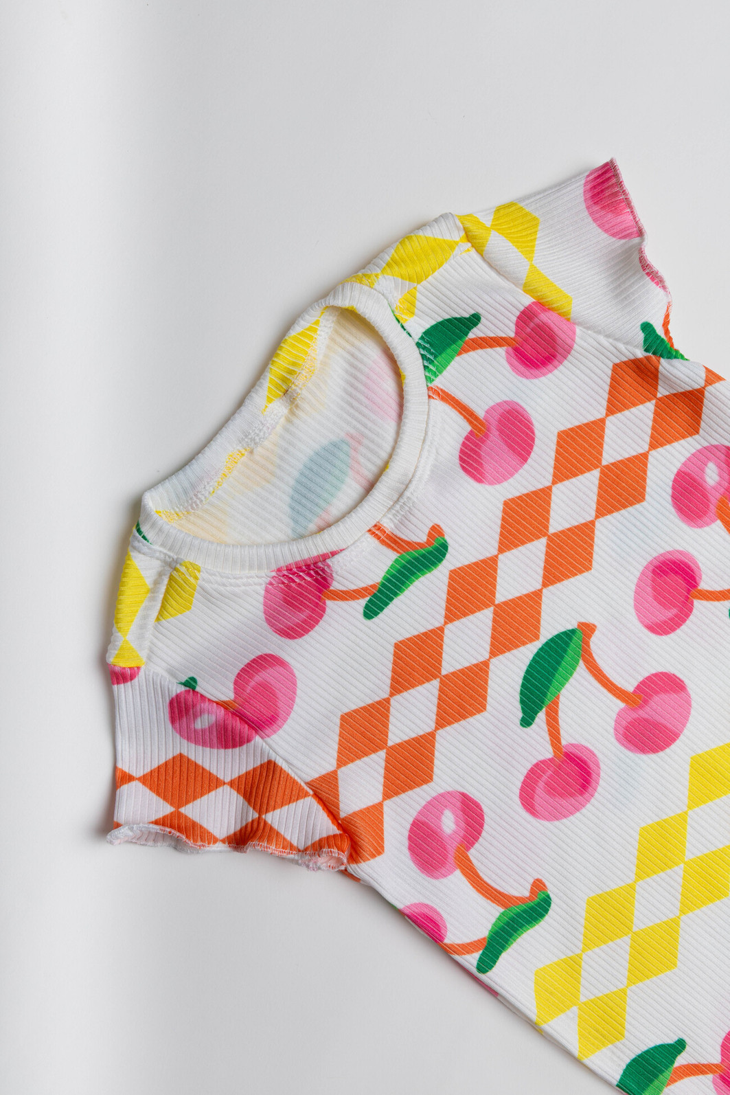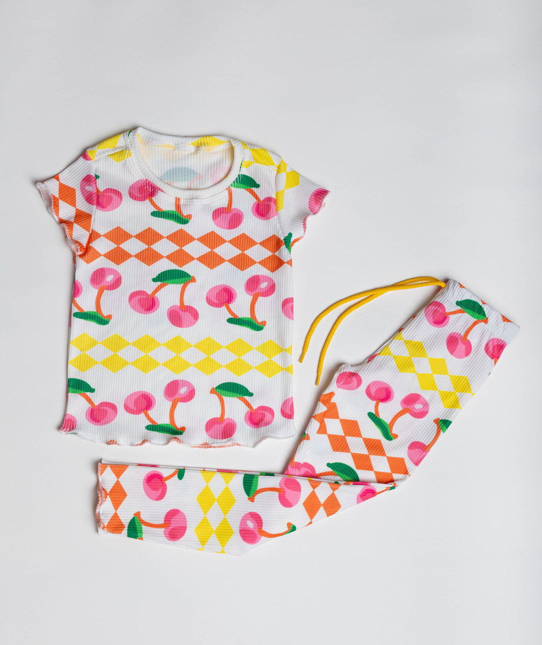 Perfeito para brincar, passear ou até mesmo para um evento especial, o Conjunto Infantil de Malha Canelada Cerejas é uma escolha encantadora que sua pequena vai adorar usar repetidamente. Disponível em tamanhos variados para se adequar ao crescimento e desenvolvimento dela.