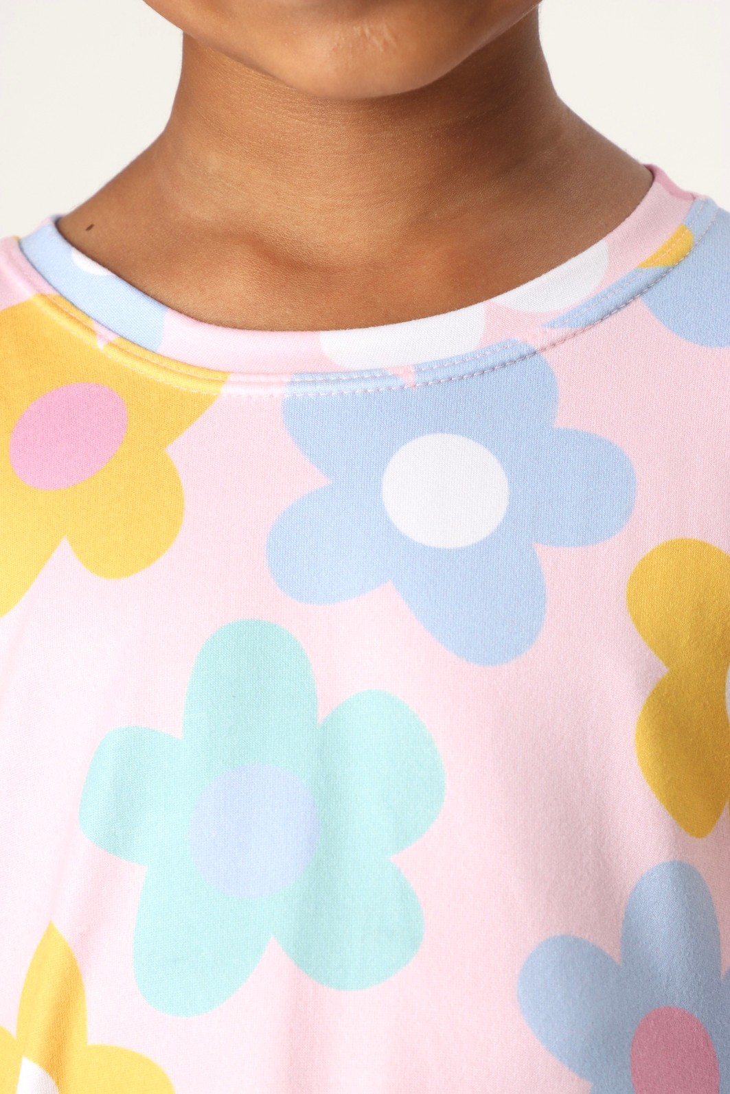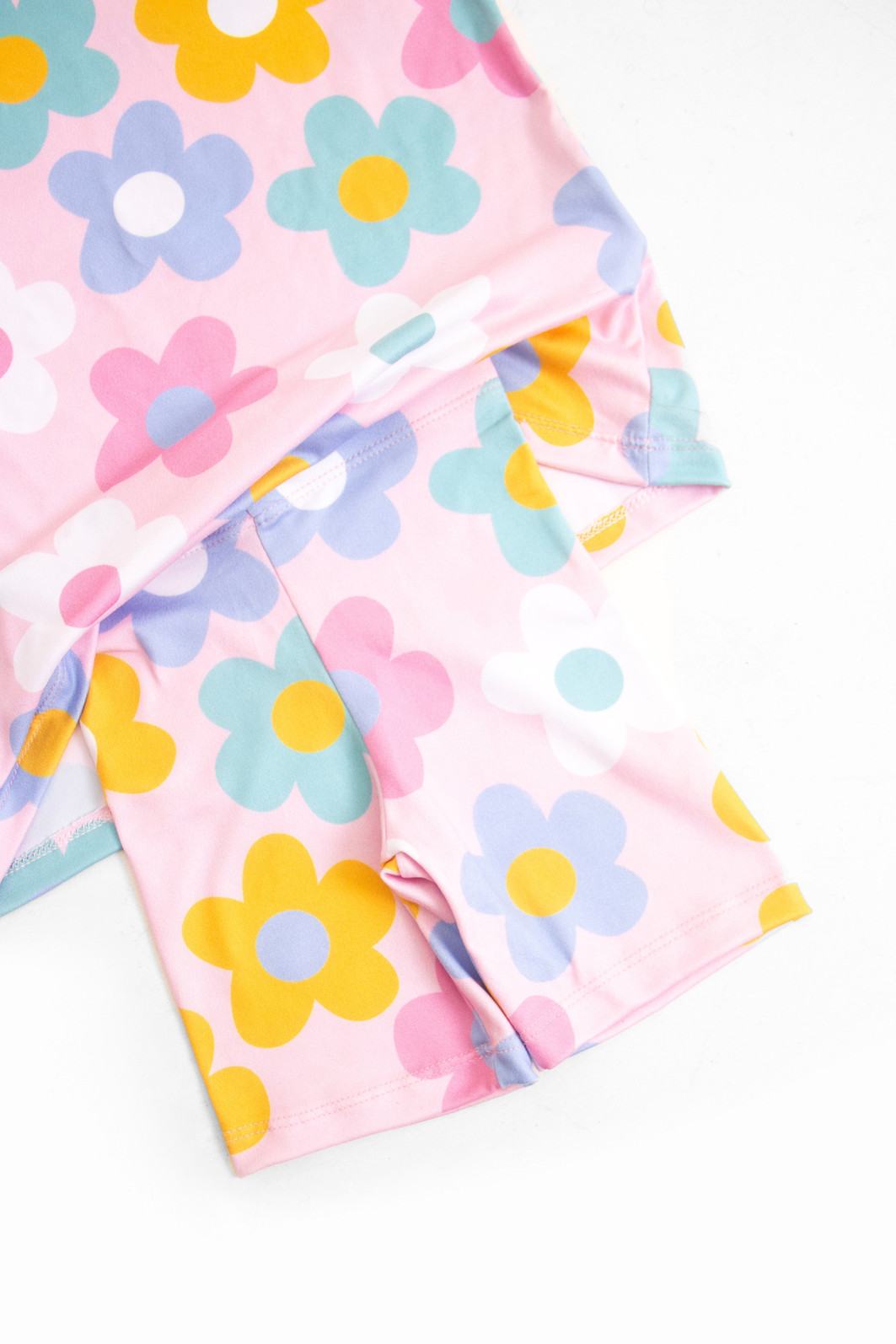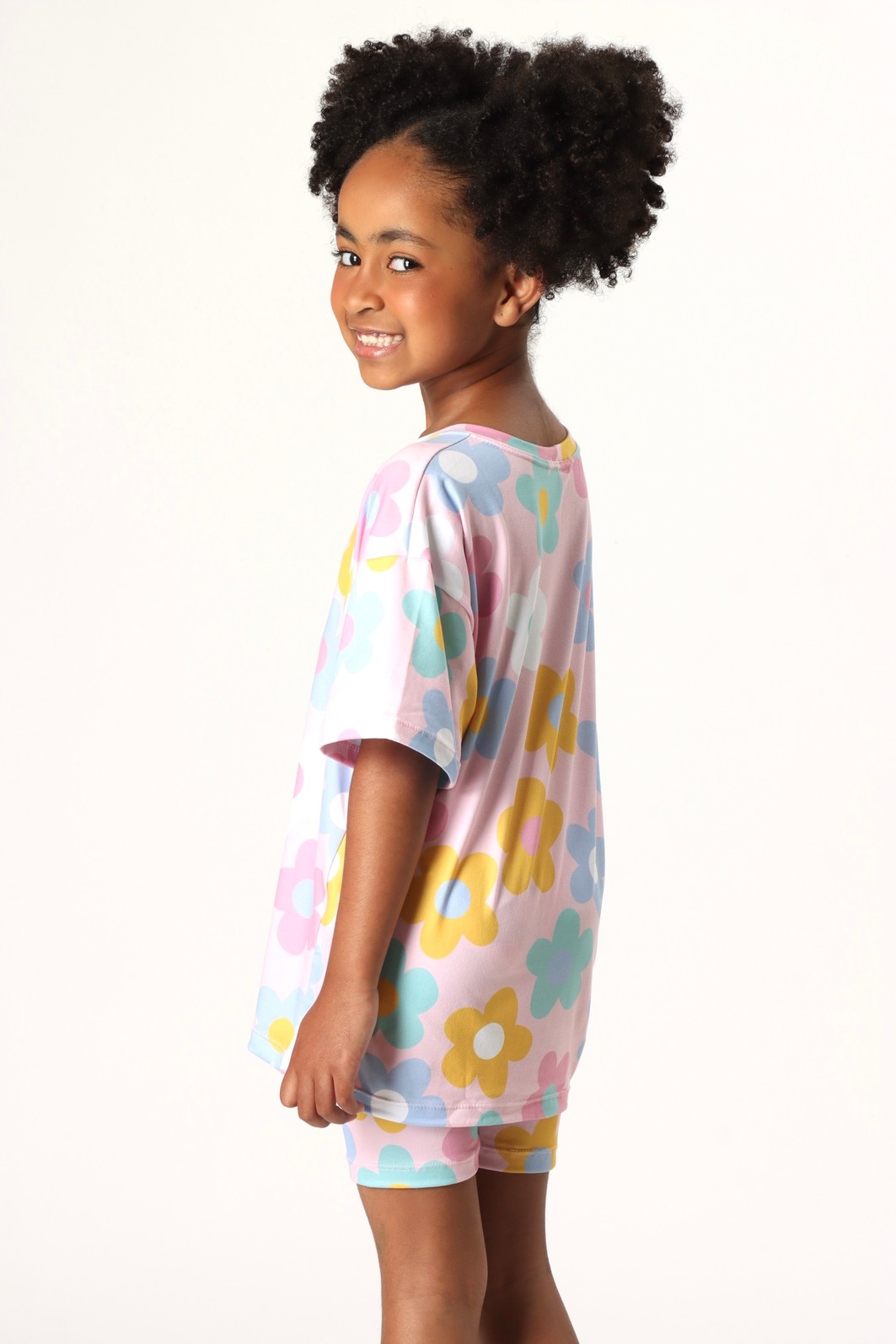 AdicionarConjunto Infantil Estampa de Flores - Camiseta Ovesised e Bermuda Biker